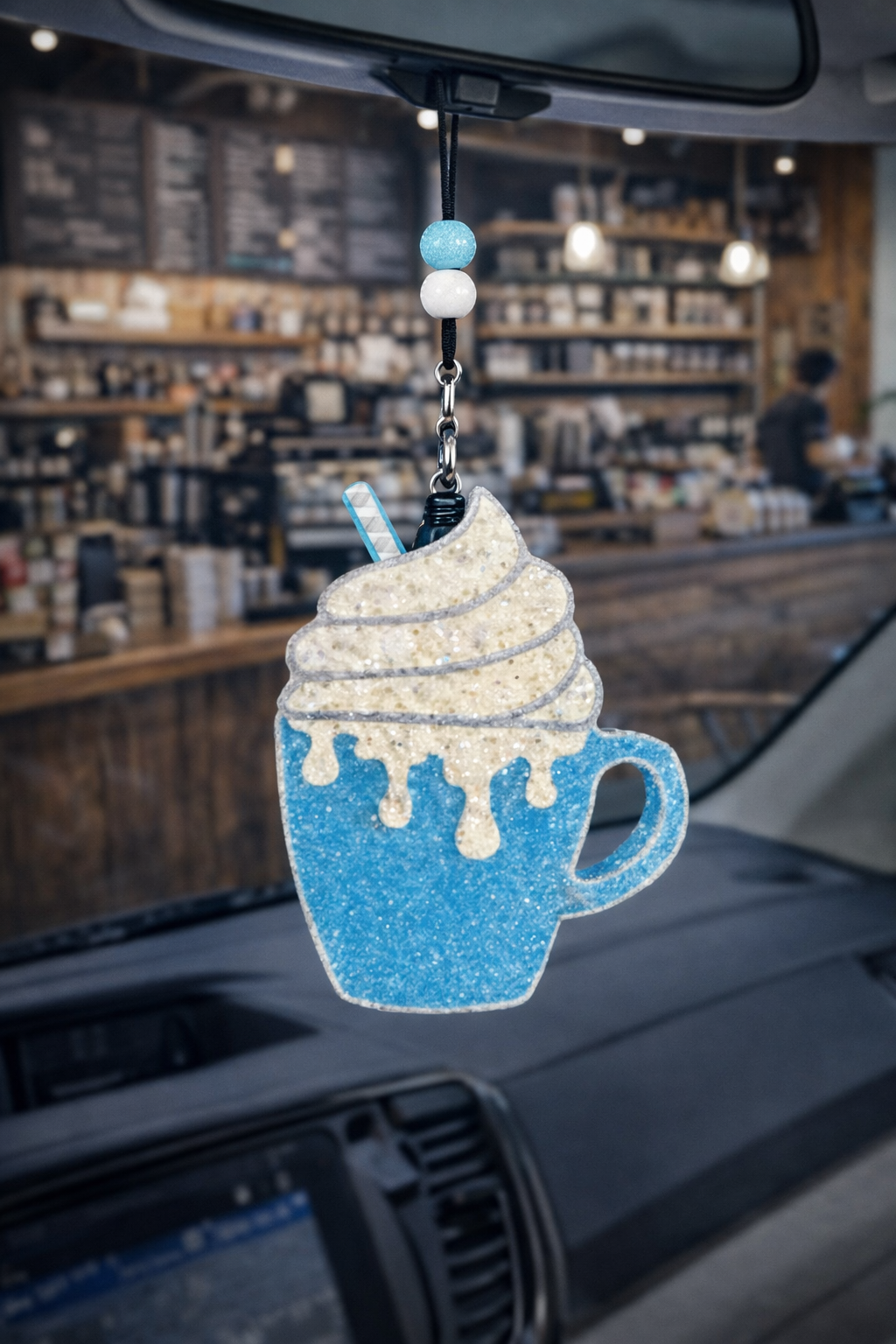 Keep your car feeling cool and refreshed with this trendy blue to-go cup air freshener. Crafted from durable Thermapol, it’s designed to provide a high-quality, long-lasting scent that matches its vibrant look.