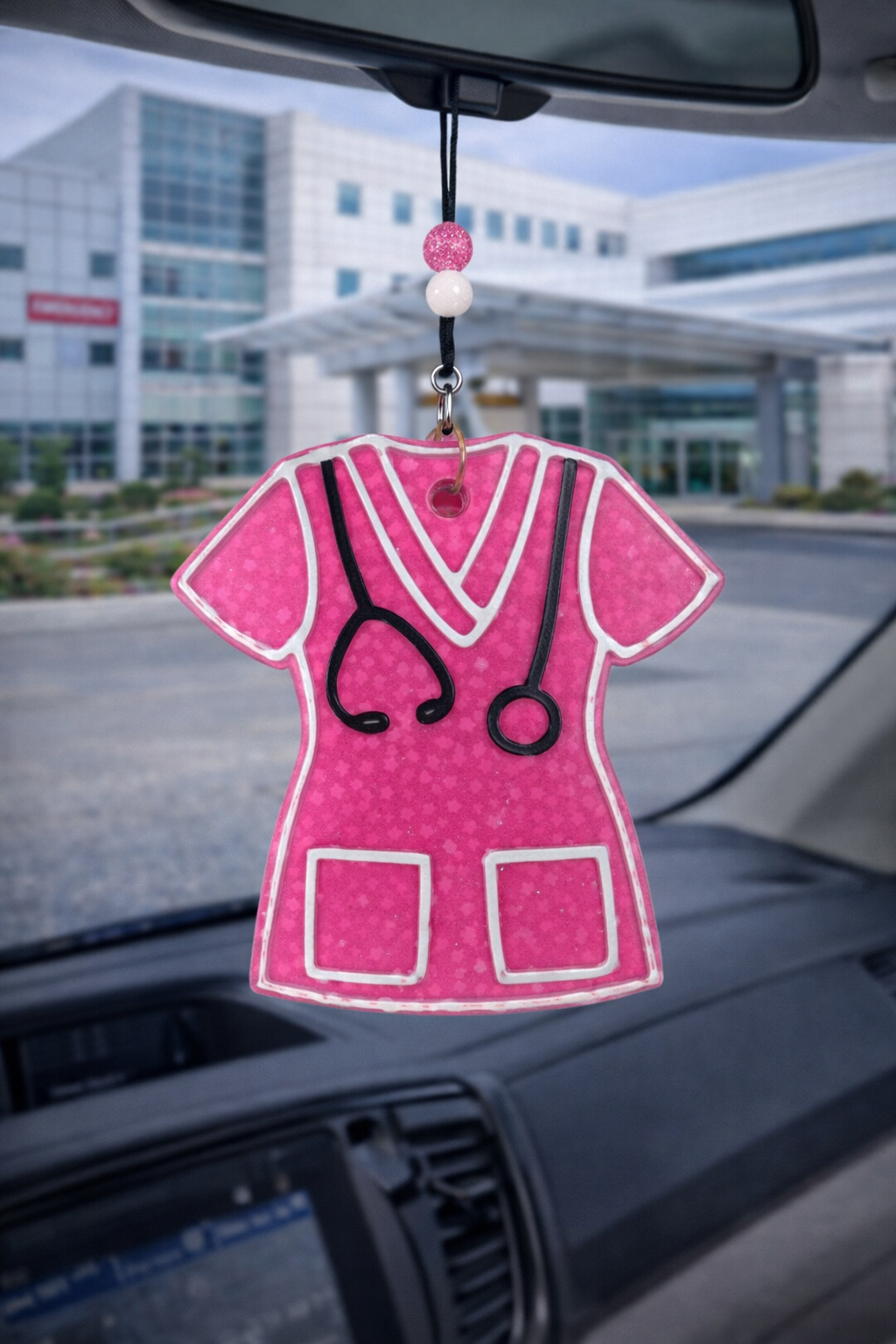 Handmade Nurse Scrubs Car Freshie – Pink Sparkle Edition