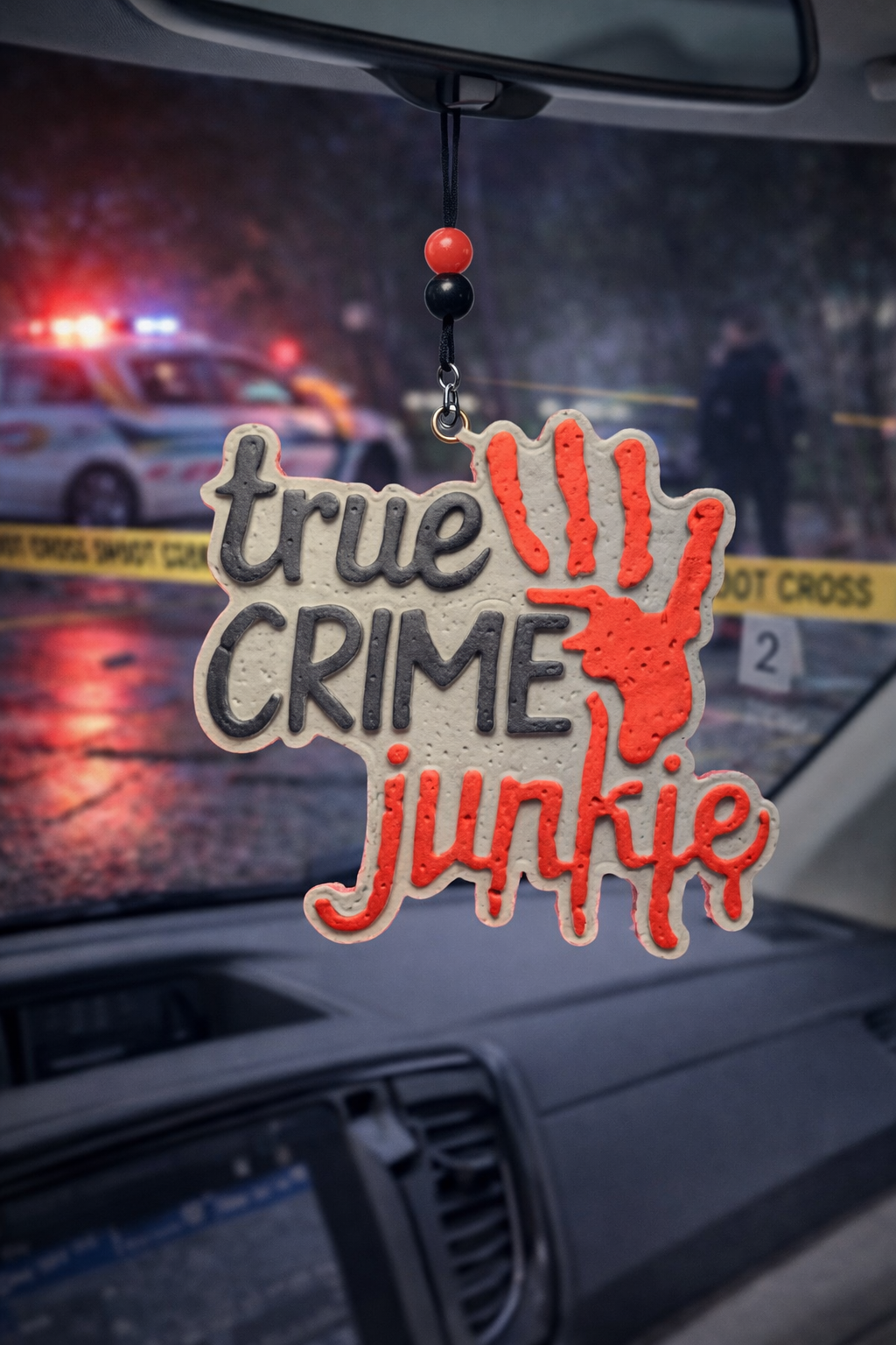 Handmade “True Crime Junkie” Car Freshie – Bloody Handprint Edition